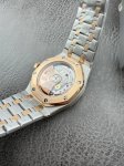 Zf又一超神之作Ap爱彼 皇家橡树系列15450St中性腕表。直径37Mm,厚度9.8Mm.真正小手腕表者的福音! 1壳套,购入15450St原版3D立体扫描数据建模,采用与正品一致三件套式结构,试模完成后,又进行进一步调整优化,包括尺寸,角度,厚度,光洁度等等。使其比例尺寸与正品完全一致,所有零配件可与正品互相通换。表带链节精致规整,链节经过上百次细致的打磨处理,呈现出完美的细腻和纹理。活动头粒松紧与正品一致,在腕表表耳处呈弯折状,可以保证腕表与手部更加贴合。折叠式表扣开合简单,佩戴方便。 2表盘,“G