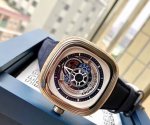 七个星期五 Sevenfriday 新颖设计!木头边框!采用泰国桃木打造!蓝色表盘蓝色真皮表带!型号:Sf-B 026Bullrush Really 2018。