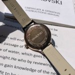 专柜最新款!Swarovski施华洛世奇Octea Nova系列石英腕表,表盘颜色青春靓丽,蜥蜴纹的意大利小牛皮表带,与太阳纹表盘颜色交相呼应,灵动跃然而出,展