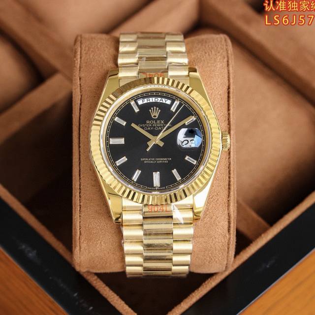/ 劳力士星期日志型40 1 蓝宝石镜面,日历2.5倍放大镜,效果同步原版。 2蚝式表壳结构,一体中层表壳,旋入式底盖及上链表冠。 3结构尺寸厚度同步原装,直径40