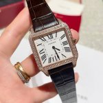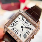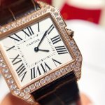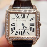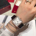 卡地亚桑托斯 杜蒙-经典皮表带方款玫瑰金色 大小同价!表盘女款直径38.5Mm×30.3Mm,男款表盘直径44.6*34.6Mm 手表厚度超薄0.5Mm,搭载瑞