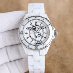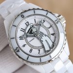 最新款,香奈儿腕表创意工作室再次赋予J12腕表新的诠释,在保留经典元素的同时,带来了焕然一新的惊喜设计。黑色和白色精密陶瓷两个表款,表盘点缀着香奈儿女士卡通形象。J12 腕表的诞生颠覆了制表界的传统观念,精密陶瓷一举成为珍贵的制表材质。该系列推出搭载Caliber12.1自动上链机械机芯的全新表款。香奈儿唯一一款背透设计, DDD 尺寸:38Mm, DDD 材质:陶瓷,镜面蓝宝石 DDD 搭载Caliber12.1自动上链机械机芯背透设计 DDD