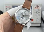 白 -金 DDD 5C Factory 心诚所致,震撼推出精细美学代表之作 Jaeger-Lecoultre积家大师系列 1558420市场最高版本6点位真小秒 DDD 精彩细节 腕表尺寸39Mmx12Mm 薄而有质 DDD 1锅盖形表盘从侧面看是有微微弧度的多次修改确保神韵与原版相媲美,还原制表特质,以稍作不同的方式展现其隽永魅力! DDD 2腕表十二点位置两个窗口分别显示星期和月份,腕表在6点钟位置的副表盘为小秒针可读取月相显示,边缘位置则显示日历针,还原所有功能。 DDD 3 表扣中间无缝隙从侧面看