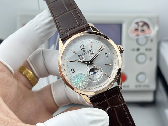 白 -金 DDD 5C Factory 心诚所致,震撼推出精细美学代表之作 Jaeger-Lecoultre积家大师系列 1558420市场最高版本6点位真小秒 DDD 精彩细节 腕表尺寸39Mmx12Mm 薄而有质 DDD 1锅盖形表盘从侧面看是有微微弧度的多次修改确保神韵与原版相媲美,还原制表特质,以稍作不同的方式展现其隽永魅力! DDD 2腕表十二点位置两个窗口分别显示星期和月份,腕表在6点钟位置的副表盘为小秒针可读取月相显示,边缘位置则显示日历针,还原所有功能。 DDD 3 表扣中间无缝隙从侧面看