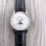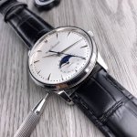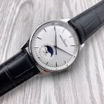 积家Jaeger Lecoultre DDD 大师系列 1362520 月相大师系列,最高版本 市面目前平民性价比最强,稳定率高,市场独家定制9015改机芯,[3D立体月相]_表壳直径39Mm与原装同步。六点钟的子盘拥有阳历阴历 月相 双期显示,月相一月转一圈,功能和一致。 技术突破 独家定制9015改 一体机 Cal.9251机芯,功能百分百同步原装自产机芯。走时稳定,素质坚挺。 细节突破 腕表盘面发现有微微的弧度,为了达到这一效果,耗时费力多次调整模具,确保神韵和感觉能与原装相媲美。月相星辰采用市面最