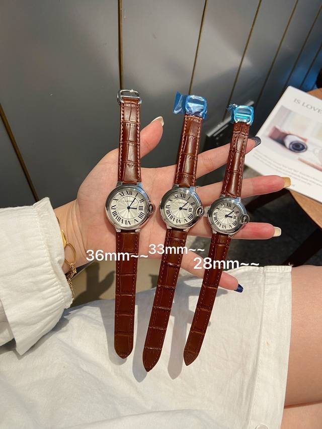 重磅来袭全球最火的款式之一!可以承载岁月的经典之作,永不过时!独家渠道!三个尺寸总共不到100块,卖一块少一块的节奏!分别为28-33-36-42Mm,机芯为石英机芯。世界顶级的珠宝与腕表品牌卡地亚Cardier,在超长的品牌历史上制作出众多经典,比如腕表中的桑托斯Santos、坦克Tank这样的传奇系列。近几年卡地亚腕表最受欢迎的款式无疑就是蓝气球Ballon Bleu。超薄腕表以超薄的身躯、轻盈的质感,将蓝气球腕表系列惯有的优雅演绎到极致。认准全钢品质 DDD