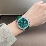 FFF 欧米茄首次使用“TréSor” 法语意思是珍宝 为一个腕表系列命名,成为超霸。今年欧米茄推出全新的超霸系列,传承了优雅大方的设计,表壳镶嵌闪耀的钻石,搭配亮色系表盘,尽显女性典雅的气质。还有表扣独特的造型十分别致。和同色系的表带相得益彰,彰显出大方之美。蓝宝玻璃,37.5尺寸 DDD