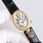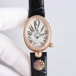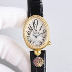 FFF 白钻 金钻 Gr优雅出品史上最强复刻女表 宝玑那不勒斯皇后系列惊艳登场,修正市场版本的所有不足,高贵典雅,尽显女王风范! DDD 表壳 腕表尺寸 小号33 X 25毫米 DDD 鹅卵形表壳高雅大气,表壳外缘饰有钱币纹。表圈和表壳周围镶嵌共117颗施华洛水晶 约0.99克拉 。表冠处镶有一颗梨形晶石 约0.26克拉 DDD 精彩细节 DDD 1.与原装吻合,在表壳背部均打有贵金属标识,效果清晰工整,彰显腕表档次。2.穹面玻璃,从侧面看不仅有鱼眼效果,还能折射钻石带来的璀璨光芒,更显腕表高贵血统。 D