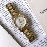 / 专柜新款!原厂阿玛尼 Emporio Armani Ar11657 费德丽卡系列女式石英腕表,优雅奢美的复古风潮席卷而来,优雅白贝母表盘上的简约刻度搭配独立日历