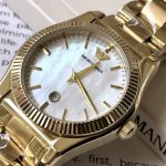 专柜新款!原厂阿玛尼 Emporio Armani Ar11657 费德丽卡系列女式石英腕表,优雅奢美的复古风潮席卷而来,优雅白贝母表盘上的简约刻度搭配独立日历