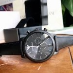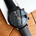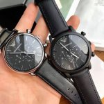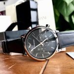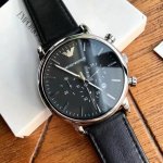 原单 Armani 阿玛尼经典休闲商务款,316钢表带,型号Ar0389。黑色表盘,三眼设计,带日期,表盘直径43Mm 矿物质玻璃镜面,清晰高透,设计超级精致,