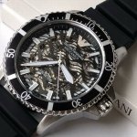 原厂阿玛尼Armani 男式机械腕表,专柜新款Ar60062,搭载与专柜一致的进口西铁城全自动机械机芯, 316 不锈钢,水波浪镂空表盘及后盖透视窗口,可见机芯