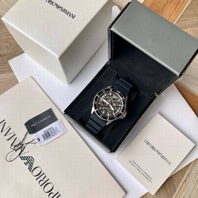 / 原厂阿玛尼Armani 男式机械腕表,专柜新款Ar60062,搭载与专柜一致的进口西铁城全自动机械机芯, 316 不锈钢,水波浪镂空表盘及后盖透视窗口,可见机芯