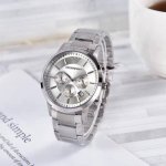 品牌阿玛尼Armani 型号:Ar2458白面Ar2448蓝面 Ar2434黑面 进口石英机芯'矿物强化玻璃镜面'不锈精钢表带隐形双锁扣'三眼计时日期窗口'巴塞