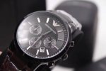阿玛尼手表男表 时尚 休闲 商务风 黑面酷炫 经典刻度 牛皮表带 针扣50米防水 矿物质水晶镜面 43Mm*11Mm