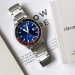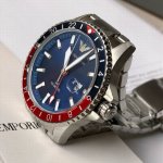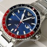 新款到货!Gmt双时区水鬼款!原厂阿玛尼Armani 石英男表,双时区指针,专柜新款!Ar11590,可单向旋转的最潮拼色圈口,搭配柳叶形指针设计,刻度与指针自