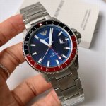 新款到货!Gmt双时区水鬼款!原厂阿玛尼Armani 石英男表,双时区指针,专柜新款!Ar11590,可单向旋转的最潮拼色圈口,搭配柳叶形指针设计,刻度与指针自带超强夜光,整体简约大气,波浪纹底盖上镌刻品牌标志性的鹰唛Logo,316L不锈钢表壳表带与三折保险表扣,无不处处彰显品质,体现别具一格的生活,矿物质强化玻璃,~42Mm表径,100米防水,配专柜全套包装。 DDD