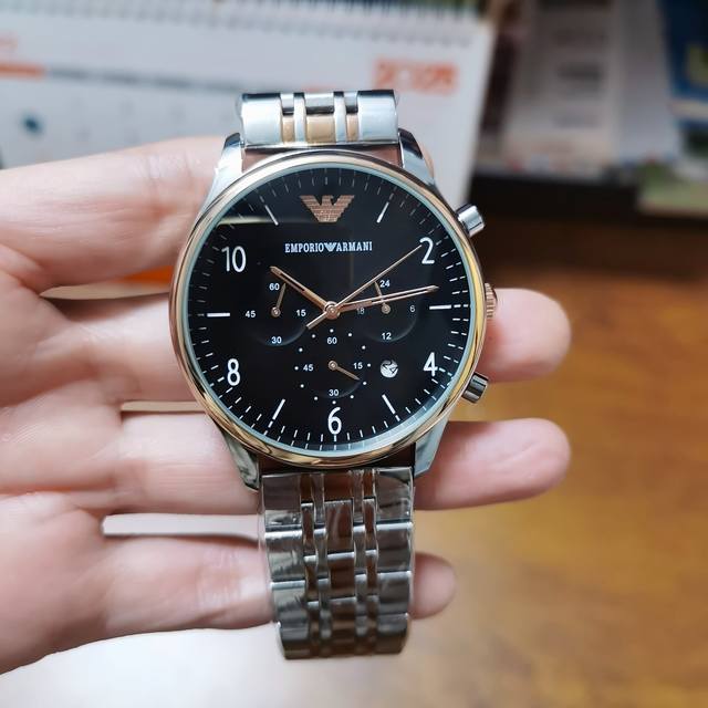 皮 ,阿玛尼-Emporio Armani优雅男士腕表 ,多功能石英机芯,超强矿物质镜面 ,精刚表带,真空电镀,精密防水 ,走时精准,直径:43Mm,厚度:11