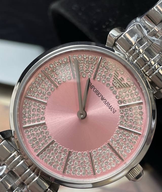 Emporio Armani阿玛尼 满天星系列 腕表 石英机芯 不锈钢表带 32Mm 粉色表盘 女表 30米防水