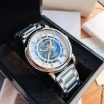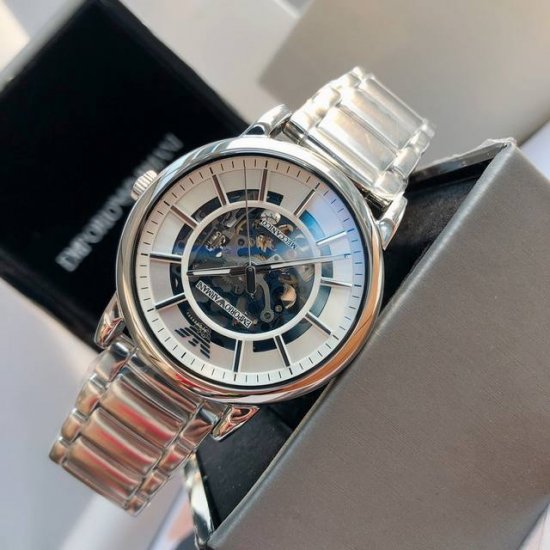 阿玛尼Amani男士 银色镂空透视自动机械表 !型号Ar60006,镂空透视窗,质感指针、利落线条大气跃然于手!银色表盘搭配316钢带表链大气又美观!生活防水3