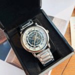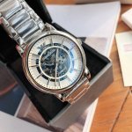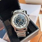 / 阿玛尼Amani男士 银色镂空透视自动机械表 !型号Ar60006,镂空透视窗,质感指针、利落线条大气跃然于手!银色表盘搭配316钢带表链大气又美观!生活防水3