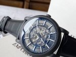 阿玛尼Ar60008黑武士磨砂黑镂空透视皮带自动机械表 镂空透视窗,质感指针、利落线条大气跃然于手#机械表#男士手表