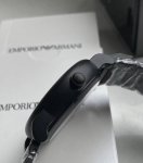 普通105,原单 Armani 阿玛尼经典休闲商务款,316钢表带,型号ar0389。黑色表盘,三眼设计,带日期,表盘直径43Mm...