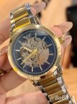 阿玛尼Armani经典复古镂空设计搭载三针尊贵大气~绅士风范,耐磨精钢表带,进口小牛皮表带,全自动机械机芯,尺寸:42Mm×12Mm