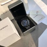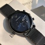 / Armani 阿玛尼 本年度最火的一块,小红书排行榜第一名,日历钢带男士石英手表型号Ar1979 ,编织钢带非常适合商务男士,上手感觉非常舒服,三眼表盘也特别实