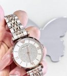 Emporio Armani阿玛尼 满天星镶钻 腕表 石英机芯 不锈钢表带 白色表盘 女表 潮流休闲时尚 DDD