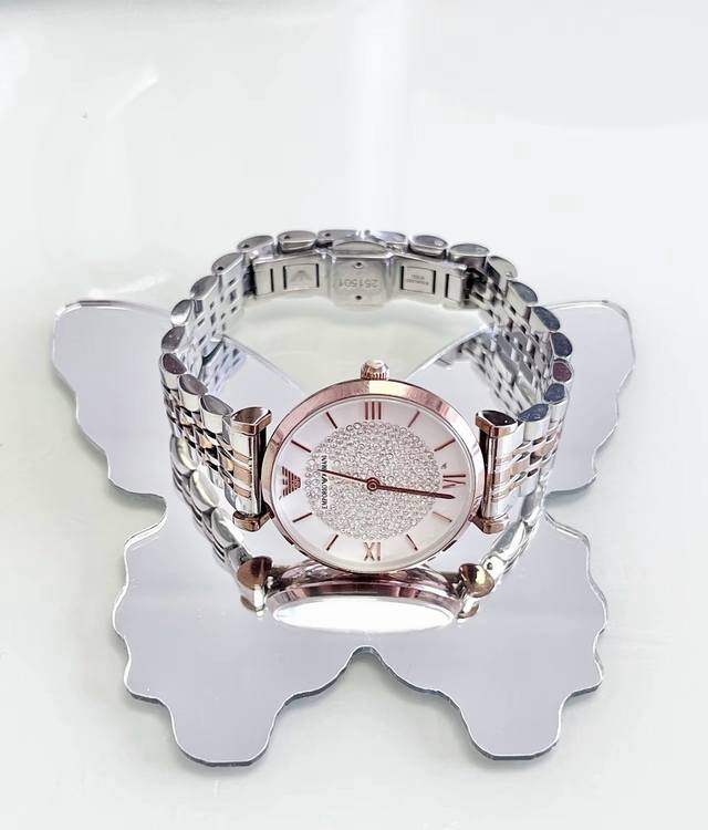 / Emporio Armani阿玛尼 满天星镶钻 腕表 石英机芯 不锈钢表带 白色表盘 女表 潮流休闲时尚