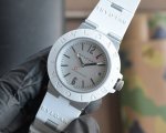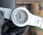 宝格丽Aluminium系列,以“铝+橡胶”的创新材质组合重新定义奢华运动腕表,2025年焕新升级后,兼具先锋设计与实用性。 DDD 表帶采用麾术貼,适配日常、休闲等多元场景。表壳为哑光喷砂铝合金 轻盈耐用 ,表圈与表带采用Fkm橡胶 抗汗耐磨 ,表背为Dlc涂层钛金属 提升抗划性 。 DDD 表径40毫米,3 6 9点位设蜗形纹计时副盘,指针与刻度覆有Super-Luminova夜光涂层,中央计时秒针尖端饰红色细节,4点半位置设日期视窗,藍宝石玻璃鏡片,防水深度100米。延续系列标志性的“Bvlgari