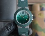 宝格丽Aluminium系列,以“铝+橡胶”的创新材质组合重新定义奢华运动腕表,2025年焕新升级后,兼具先锋设计与实用性。 DDD 表帶采用麾术貼,适配日常、休闲等多元场景。表壳为哑光喷砂铝合金 轻盈耐用 ,表圈与表带采用Fkm橡胶 抗汗耐磨 ,表背为Dlc涂层钛金属 提升抗划性 。 DDD 表径40毫米,3 6 9点位设蜗形纹计时副盘,指针与刻度覆有Super-Luminova夜光涂层,中央计时秒针尖端饰红色细节,4点半位置设日期视窗,藍宝石玻璃鏡片,防水深度100米。延续系列标志性的“Bvlgari