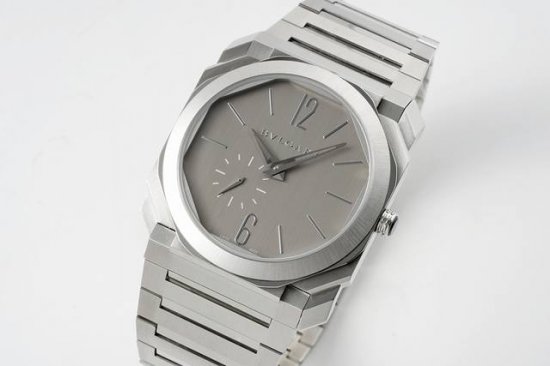 宝格丽Octo Finissimo是Octo系列中非常受欢迎的表款,以超薄而闻名。Octo Finissimo的设计灵感来自于罗马的马克森提斯殿,这一标志性的建筑拥有宽大的方形底座,由拱形柱分开,Octo Finissimo正是受其结构所启发,不同于以往的独特造型,在树立超薄腕表行业新标杆的同时,引领行业潮流趋势 1尺寸:40Mm 2厚度:7Mm 3表壳:缎面抛光316精钢 4表镜:上下配备蓝宝石水晶玻璃 5表盘:缎面银 抛光黑漆 旭日纹蓝 6钢带:缎面间抛光316精钢 7表冠:精钢镶嵌陶瓷 8机芯:珍珠