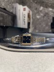 Panthère De Cartier #卡地亚猎豹系列 女装中小号表款,进口石英机芯。316L精钢表壳:表冠表壳镶钻5A莫桑石 中号表壳镶嵌44颗,小号表壳镶嵌36颗 复古黑金色漆艺表盘 中号尺寸12点钟位置镶嵌5A莫桑石刻度 黄金剑形指针,表圈镶嵌铆钉装饰,蓝宝石镜面,螺丝旋转式316L精钢拆卸表链。