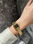 Panthère De Cartier #卡地亚猎豹系列 女装中小号表款,进口石英机芯。316L精钢表壳:表冠表壳镶钻5A莫桑石 中号表壳镶嵌44颗,小号表壳镶嵌36颗 复古黑金色漆艺表盘 中号尺寸12点钟位置镶嵌5A莫桑石刻度 黄金剑形指针,表圈镶嵌铆钉装饰,蓝宝石镜面,螺丝旋转式316L精钢拆卸表链。