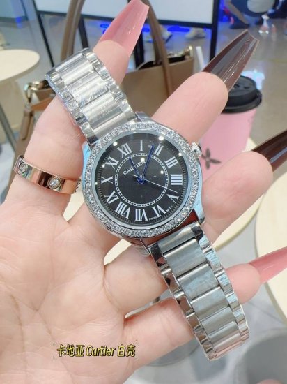 / 卡地亚女士腕表 进口石英机芯 直径 33Mm 三针石英腕表,头层小牛漆皮表带 蝴蝶扣钢带该款腕表备受女性喜爱,在不同的场合映耀着她们各自的独特个性与迷人风华