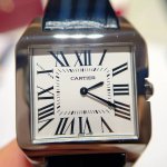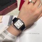 卡地亚桑托斯 杜蒙-经典皮表带方款 银色 大小同价!表盘女款直径38.5Mm×30.3Mm,男款表盘直径44.6*34.6Mm 手表厚度超薄0.5Mm,搭载瑞士