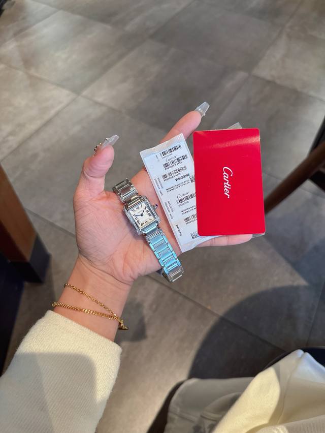 卡地亚法国坦克系列Tankfrancaise,进口石英机芯,316L精钢表壳表链,钢化水晶镜面,宝石圆珠表冠,表壳尺寸 DDD 中号: 宽度27Mm 长度32M