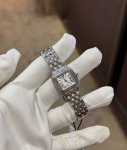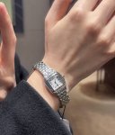 卡地亚猎豹手表,华丽而不羁,是panthèRe De Cartier猎豹所传达的美学风格。它线条流畅,魅惑动人,柔软服帖于腕间,宛若在肌肤上翩翩起舞。独特的造型彰显成熟优雅、自信动人的女性形象。 DDD 表壳一体成型,搭配装瑞士石英机芯,316L精钢壳套,镶嵌钻石 把头镶嵌一颗合成蓝色尖晶石,镀银表盘,剑形蓝钢指针,100%三度防水,尺寸:27 X 37毫米,22*30毫米,二个尺寸。每块表都有独立的机身编号。 DDD