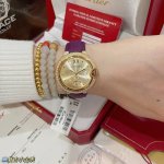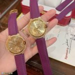 卡地亚蓝气球新款女表系列!高贵紫色荔枝纹小牛皮单排钻石四角钻此款腕表具有弄厚的古典气感,钻点刻度,设计大气且耐看,瑞士石英机芯 尺寸36Mm 中古美表不仅满满的