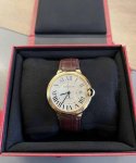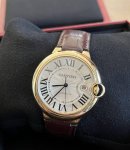 卡地亚蓝气球系列型号:W6900551机械男表,42表经,表壳18K黄金,42毫米表径,白盘罗马刻度,蓝宝石水晶玻璃,折叠扣鳄鱼皮表带,查码可申请8年延保,公价