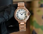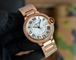 白钢 金+20 钻圈+40 Ballonbleudecartier卡地亚蓝气球33Mm腕表,稳定正天津机械机芯,太阳折射纹工艺表面,316L精钢表壳表链,立体切
