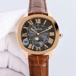 卡地亚Drive De Cartier系列腕表。以典雅肃穆的枕形设计搭配利落大方的线条布局,尽显男儿阳刚不屈的魅力。 表壳 腕表数据40Mmx41Mmx12.5Mm,独特的枕形表壳做工一流,蓝宝石玻璃明朗饱满的弧形线条到位。精益求精,为广大表友还原最接近原版的体验。 技术突破 原厂Cal.1904-ps Mc机芯,自动陀和大小夹板均有做镀铑处理,摆轮的位置与吻合,仿真度直逼。 精彩细节 1.市场独家购入原装开模 2.淬火烤蓝指针饱满立体 3.表盘的经典钮锁饰纹细腻协调 4.12只罗马标识采用叠加印刷,效果