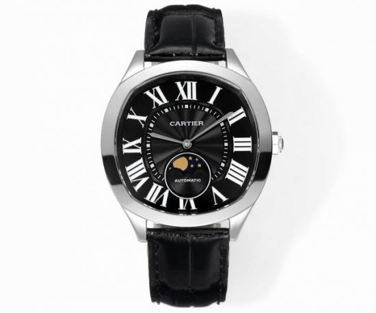 卡地亚Drive De Cartier系列腕表。以典雅肃穆的枕形设计搭配利落大方的线条布局,尽显男儿阳刚不屈的魅力。 表壳 腕表数据40Mmx41Mmx12.5Mm,独特的枕形表壳做工一流,蓝宝石玻璃明朗饱满的弧形线条到位。精益求精,为广大表友还原最接近原版的体验。 技术突破 原厂Cal.1904-ps Mc机芯,自动陀和大小夹板均有做镀铑处理,摆轮的位置与吻合,仿真度直逼。 精彩细节 1.市场独家购入原装开模 2.淬火烤蓝指针饱满立体 3.表盘的经典钮锁饰纹细腻协调 4.12只罗马标识采用叠加印刷,效果