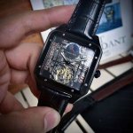 品牌: 卡地亚 镂空飞轮新品,商务休闲 奢华大气类型:精品男士腕表 新品 表带:真牛皮表带 舒适 机芯:高级机械机芯 稳定 材料:矿物质防刮镜面 高清,耐磨 大