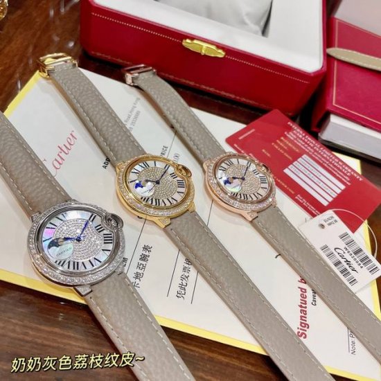 白钻 金钻 实拍奶奶灰荔枝纹皮 订制色系到货 灰色一直是时尚界的宠儿 热门色浅色调 神仙颜色好品味的象征!荔枝纹皮饱和度恰到好处,细腻的羊皮戴上手超级柔软舒适关键是超显高档 卡地亚蓝气球镶钻面奢华贵气十足 实物超美瑞士石英尺寸36Mm 认准独家色系 力荐入手! DDD