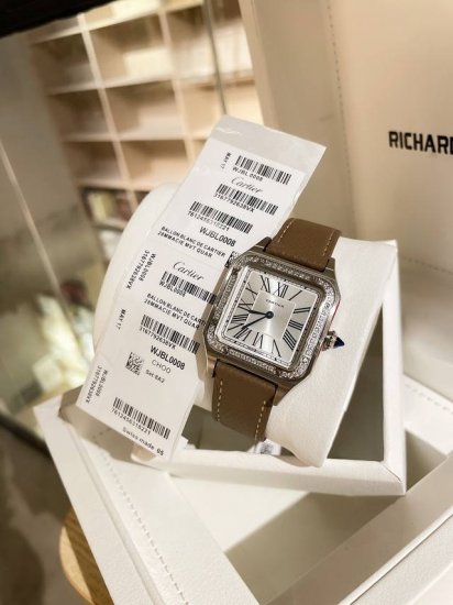 白钢 . 色20. 卡地亚最经典的系列之一山度士 品牌:卡地亚山度士系列 男士腕表表 表带:意大利牛皮表带...