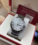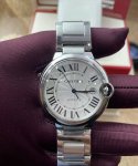 / 近全新未使用 卡地亚蓝气球系列热门机械全自动男表 42.1毫米超大号表盘 白色太阳纹盘面 黑色经典古罗马刻度 淬火烤蓝剑型指针 带日历显示 尖晶石蓝宝石把头 鱼