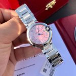 重磅来袭全球最火的款式之一!粉色面28Mm表径,可以承载岁月的经典之作,永不过时!独家渠道!卖一块少一块的节奏!机芯为石英机芯。世界顶级的珠宝与腕表品牌卡地亚Cardier,在超长的品牌历史上制作出众多经典,比如腕表中的桑托斯Santos、坦克Tank这样的传奇系列。近几年卡地亚腕表最受欢迎的款式无疑就是蓝气球Ballon Bleu。超薄腕表以超薄的身躯、轻盈的质感,将蓝气球腕表系列惯有的优雅演绎到极致。 DDD